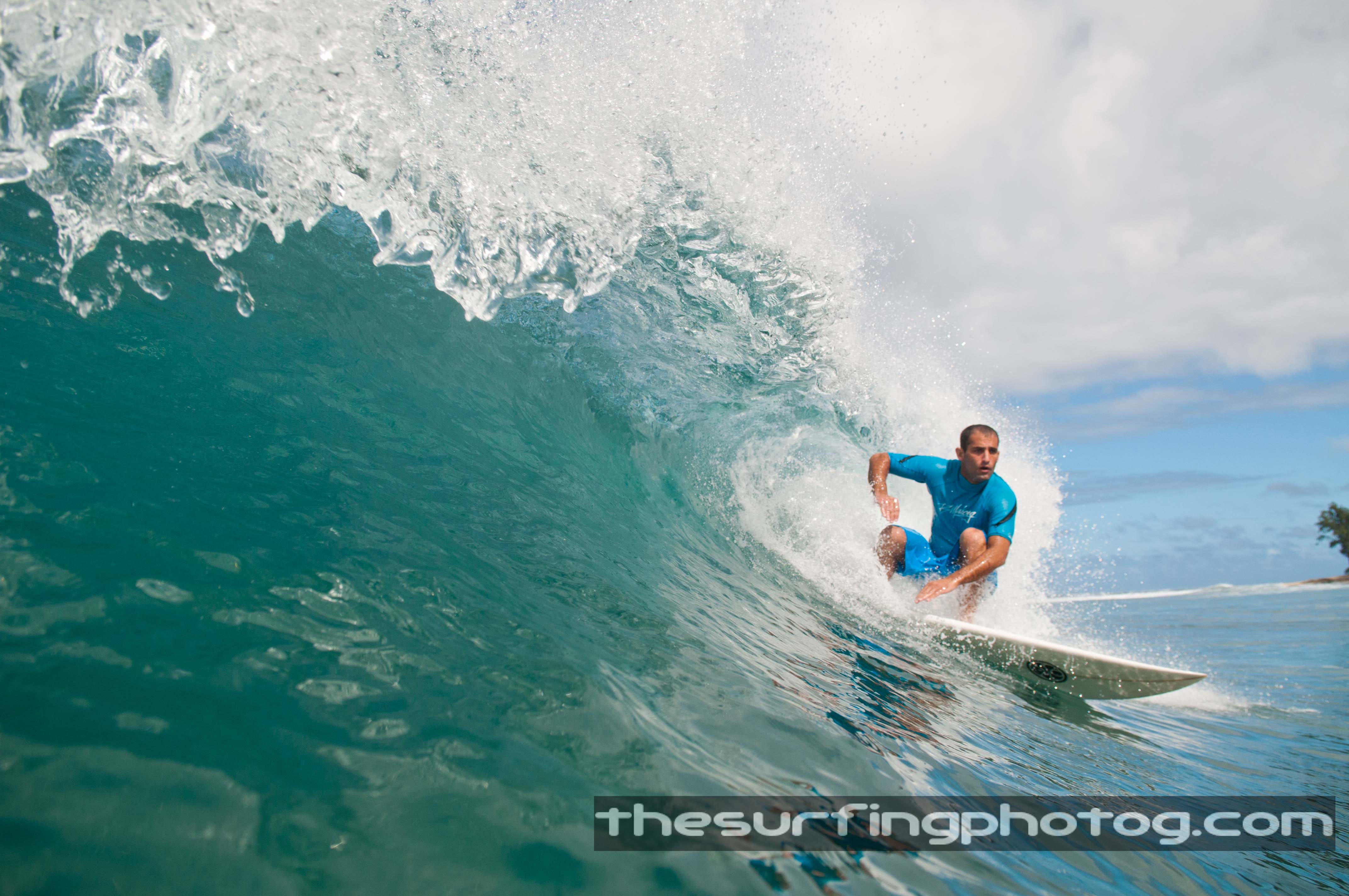 I can focus with my fisheye up to about 4 inches away from my camera and I find my self closer then that some times. Once the top surfers trust you in the water the rest try to get used to the comfort of having a camera in their face. I don’t discriminate, if you can rip I will pull the trigger and take the shot. Today on top of getting used to being inches away from a surfer on a wave, I tried to take some shot that other surf photographers uses as illusion shot. By tilting your fisheye lens you can make a surfer look deeper in a wave or a wave look bigger then it really is. Check it out and if you have any questions I’ll be happy to answer.