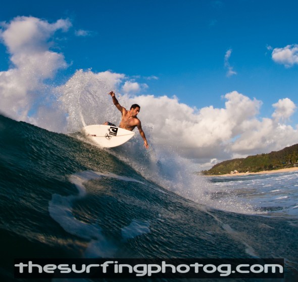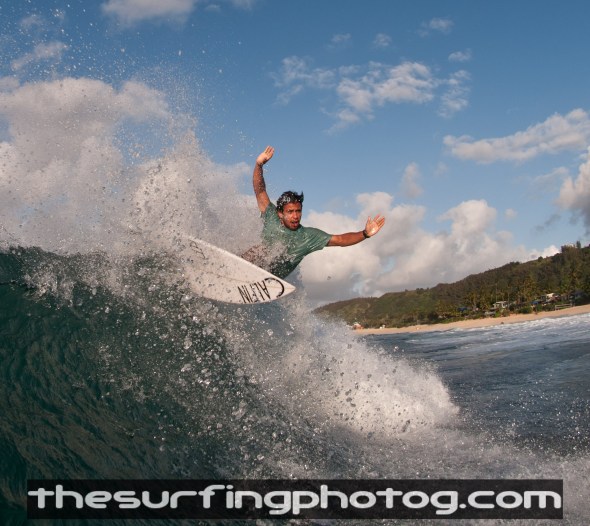 Totally could have sat at Hale’iwa Alii Beach Park and watched the first day of the Reef Pro in 2 foot surf but instead I hit the beach with my camera and some New York Transplants (Got to represent my roots). We hit up Rocky lefts/Gas chamber, the East facing swell is blending the two breaks and really shifting the peaks. Nothing huge but definitely a bunch of head high sets.
